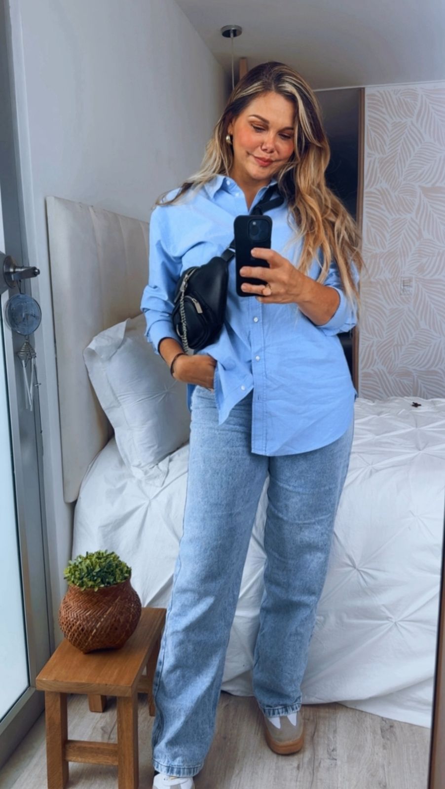 El jean palazzo perfecto para estilizar tu figura con un fit moderno, cómodo y súper favorecedor. Su diseño en denim firme abraza tus curvas y alarga visualmente las piernas.